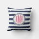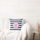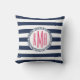 Preppy Nautical Navy & White Strip Pink Monogram Kissen