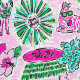 Preppy Palm Beach Pink & Green Animal Vacation Tapete