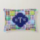 Preppy Patchwork Madras Navy Quatrefoil Monogram Dekokissen