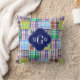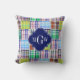 Preppy Patchwork Madras Navy Quatrefoil Monogram Kissen