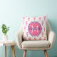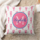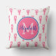 Preppy-Pink-Hummer auf Weiß mit Navy-Monogramm Kissen