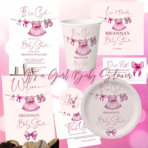 Preppy pink clothes on a line girls baby showerDesignt von Ieva Jenciute