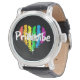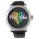 PrideVibe Herzlogo Schwarze Lederstrebe Armbanduhr