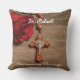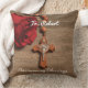 Neben einer schönen rote Rose befindet sich ein Rosarenkreuz aus Holz. Schönes Geschenk, Souvenir, Geschenk oder Party, das für die Feier mit einem Priester auf seinem Jubiläum der Ordination unverzichtbar ist.
