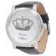 Uhr, Klassische Damenuhr mit schwarzen Lederarmband