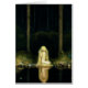 Prinzessin Tuvstarr mit langen, blonden, gewellten Haaren, die im Wald sitzen und ihre Reflektion im dunklen Wasser betrachten. Schöne Wasserfarbe von John Bauer. Illustration für die schwedische Folktale "Die Geschichte von Skutt dem Elch und der kleinen Prinzessin Tuvstarr", geschrieben von Helge Kjellin im Jahr 1913.