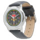 Uhr, Vintage Männeruhr mit schwarzem Lederarmband