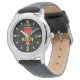 Uhr, Vintage Männeruhr mit schwarzem Lederarmband