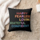 Dieses 16 x 16 PROUD - glücklich, furchtlos, liebevoll, dankbar und zuversichtlich - geheertes Regenbogenkissen ist eine großartige Möglichkeit Ihre Liebe für die LGBTQ Community zu zeigen. Es würde gut auf einen Stuhl, ein Sofa oder ein Bett geworfen.