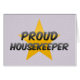 Design beinhaltet einen hochwertigen Proud Housekeeper, der in einem lustigen Schriftart mit einem hellen Stern im Hintergrund geschrieben ist.