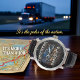 This bold wall clock proudly displays the essential role of truckers in keeping America moving. Against a black background with a brown rim, it features a semi-truck set against a distressed American flag backdrop. The prominent text, "TRUCKERS MOVE AMERICA," emphasizes the critical contribution of these dedicated professionals. It's a perfect gift for any proud American trucker who takes pride in their vital work. The design tool can also be used to add custom text if you want your name or company on this clock. You can customize the color of the frame to any color you desire by going into the design tool.