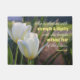 Weich weißes und gelbes Tulpenfoto mit den Sprichwörtern 31:25, sie ist mit Kraft und Würde bekleidet und lacht ohne Angst vor der Zukunft.