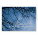 Psalm 5:3 Meine Stimme sollst du morgens hören. Foto zeigt einen auffallend blauen Himmel mit Baumgliedmaßen und Mond.