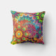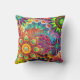 Psychedelisch Abstrakte Blütenwirbelkissen mit lustigen Blumenformen und leuchtend farbigen Mandala-Designs. Dieses Kissen mit dem Kissen ist ideal für jeden mit kühnen Farben in der Zuhause.