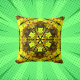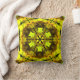 Psychedelische Kaleidoskop-Blume Gelb und Grün Kissen