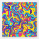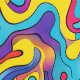 Dieses Kunstwerk präsentiert eine lebendige und energetische Komposition wirbelnder, gewellter Linien in einem Kaleidoskop von Farben. Das Design zeichnet sich durch fett überlagernde Formen in den elektrischen Farbtönen Gelb, Blau, Rosa, lila und Orange aus, wodurch eine dynamische und flüssige Bewegung im gesamten Stück entsteht. Die schimmernden Formen und die intensive Farbpalette erinnern an die Psychedelie der 1960er und 1970er Jahre: Das Zusammenspiel von Kurven und Kontrasten macht das Kunstwerk visuell anregend und lebendig.