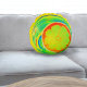 Ein Stück psychedelischer Zitrusfrüchte mit leuchtenden Wirbel in Orange, Gelb und Grün. Dieses farbenfrohe, tropische Kissen ist hell und kühn mit einem Retro-Pop-Gefühl, das lustig und farbenfroh ist. Dieses Bild ist eine Originalfotografie von JLW_FOTOGRAFIE.