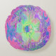 Psychedelischer Trippy Lime Green und Lila Hibisku Rundes Kissen