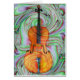 Hölzernes Cello bedeckt mit bunten psychedelischen wirbelnden farbigen Mustern für einen künstlerischen Blick.