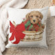 Pudelwelpe, der im Weihnachtskorb sitzt Kissen