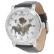Uhr, Vintage Männeruhr mit schwarzem Lederarmband