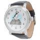 Uhr, Vintage Männeruhr mit schwarzem Lederarmband