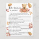 Feiern Sie mit diesem Herbst Teddy Bären thematisch Baby Dusche Party! Der niedliche Teddybär mit einem Herbstkürbis in seinen Pfoten sitzt im Herbstwald. Auf der Rückseite der Karte befinden sich Herbstblätter. Matching-Elemente verfügbar.