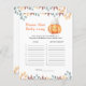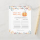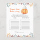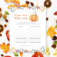 "Ein kleiner Kürbis ist unterwegs. Feiern Sie mit diesem Baby Cartoon Kürbis Thema für Baby Dusche Party! Wasserfarbener niedlicher Cartoon Kawaii Kürbis mit Herbstmütze (Kappe) und Herbstlauben. Auf der Rückseite der Karte befinden sich Herbstblätter.