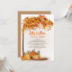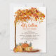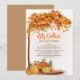 Erntedank Dinner Einladung mit orangefarbenen Kürbissen und farbenfrohen Herbstlauben. Text ist anpassbar, also schreiben Sie Ihre eigene Nachricht.