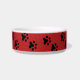 mutiger roter Hintergrund, graue KNALLENDE Punkte und reiche schwarze Tatzendrucke stellen einen sehr anziehenden Haustierteller des Spaßes und des Auges her. ändern Sie das Wort MEOW mit Ihrem eigenen Haustiernamen. Tatzendrucke verließen und recht seien Sie beweglich, entfernbar (oder) wenn Sie mehr Raum für Namen benötigen.