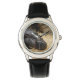 Uhr, Vintage Männeruhr mit schwarzem Lederarmband