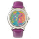 Uhr, Kinderuhr aus Edelstahluhr mit lila Lederarmband