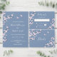 Die rosafarbene Kirschblüte verharrt auf einem staubblauen Hintergrund, mit Braut- und Bräutigamen in einem eleganten, handgeschriebenen Drehbuch.. Mit einem scannbaren qr Code für Ihre Hochzeitswebsite auf der Rückseite.
