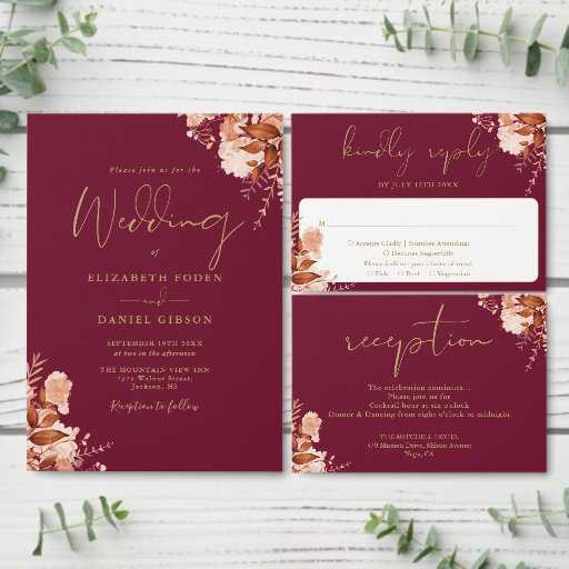 Rustic Burgundy And Gold Floral Fall Wedding SuiteDesignt von Thisisnotme Designs
