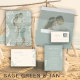 Summer ocean beach destination sage green and tan wedding online website RSVP mini enclosure card featuring hand-drawn starfish and a chic retro typography script.