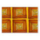 mit originalen handgezeichneten und bemalten Kunstwerken der Künstlerin Sacha Grossel. Dieses doodle Design ist ein quadratisches Muster, das sich im Stil der Retro Art Déco-Muster wiederholt. Die Farbtöne sind hell und erinnern an die Pop-Kunst. Braun, Senf, Gelb. Dieses Muster ist einzigartig, Vintag inspiriert und für Zuhause-Dekoration und Zubehör geeignet