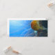 Foto einer Qualle unter Wasser, die in tiefblauem Wasser schwimmt