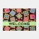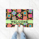 Quilt Patchwork Blocks Black Welcome Colorful Fußmatte