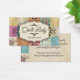 Niedliche Grunge Patchwork Visitenkarte oder "handgefertigt mit Liebe" Geschenkkarte oder hängende Anhänger für Quilter oder Stechen, Nähen oder Nähen. Streifen, Polka-Punkte, kleines Muster und einige Vintage Blume in bunten, tiefen Tönen mit dekorativem Namensschild.