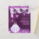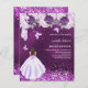 Für eine elegante Quinceañera. Ein lila, ungleicher Hintergrund. Dekoriert mit Konfetti, Ballerina Zehenschuhen, Schmetterlingen, Rose und einem Mädchen in einem Kleid. Personalisieren und fügen Sie einen Namen, Alter/Text und Party-Details. Der Name wird mit einem handgeschriebenen Stilskript geschrieben. 1 Blatt = 1 Einladung mit Druckkante bis Kante.