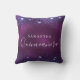 Ein Kissen für eine Quinceañera, 15 Jahre alt Mädchen Zimmer. Ein tiefer lila Hintergrund mit blauen Imitaten Glitzer Staub. Die lila Farbe ist ungleichmäßig. Der Text: Quinceañera ist in Weiß geschrieben mit einem großen modernen Schrift im Stil der Schrift. Personalisieren und einen Namen hinzufügen.