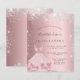 Eine moderne, stilvolle und glamouröse Einladung zu einer Quinceañera, 15. Geburtstagsfeier. Rosa Untergrund mit Imitaten, silberfarbenem Glitzer und einem Ballgown. Der Name ist mit einem modernen handgeschriebenen Stilskript geschrieben. Personalisieren Sie Ihre Party-Daten und fügen Sie sie hinzu.