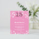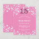 Ein rosa Hintergrund. Mit weißen Sternen dekoriert. Weißer Text. Personalisieren und fügen Sie einen Namen und Party-Details hinzu. 1 Blatt = 1 Einladung mit Druckkante bis Kante.