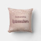Ein Kissen für eine Quinceañera, 15 Jahre alt Mädchen Zimmer. Eine Rose goldener Hintergrund mit Konfetti. Personalisieren und einen Namen hinzufügen. Quinceañera ist in dunklem Rose Gold mit einem großen modernen Drehbuch geschrieben.