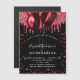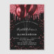 Für eine elegante Quinceanera, 15. Geburtstag. Ein stilvoller schwarzer Hintergrund. Der Glitzer und die Ballons sind mit roten Imitaten geschmückt. Personalisieren und fügen Sie Namen, Alter und Party Details hinzu. Der Name wird mit einem handgeschriebenen Stilskript geschrieben