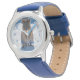 Kinderuhr aus Edelstahl mit blauem Lederarmband