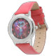Uhr, Kinderuhr aus Edelstahl mit rosa Lederarmband