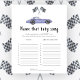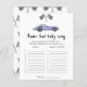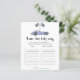 Race Car Thema Baby Dusche Einladungskarte mit Aquarellbildern eines lila (violetten) Vintage Autos und schwarz - weiß Rennen Flagge. "Renn um eine Babydusche."
