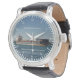 Uhr, Vintage Männeruhr mit schwarzem Lederarmband