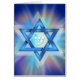 Stern von David mit dem hebräischen Letter Shin in der Mitte mit bunten Lichtstrahlen von hinten.